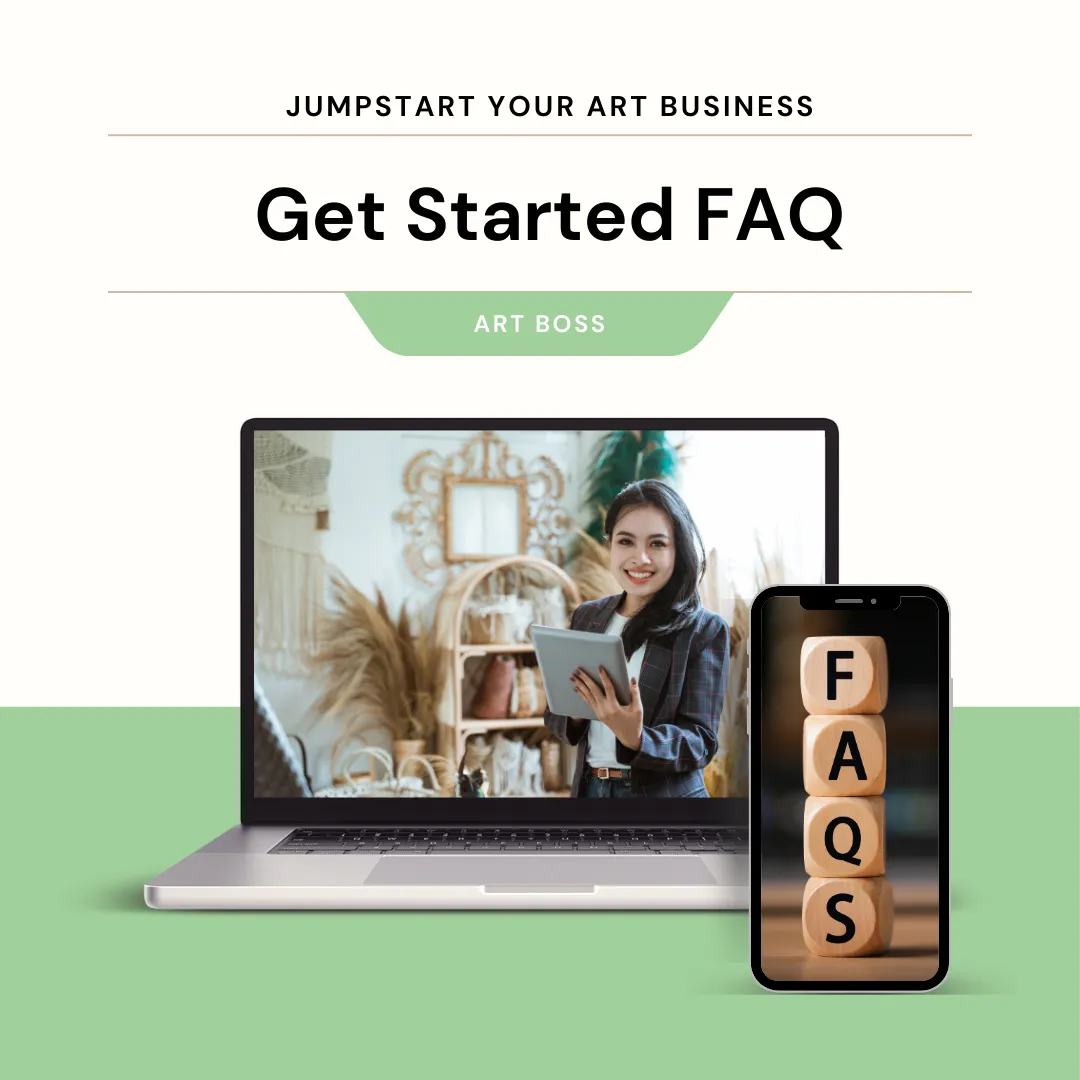 The Get Started kit includes access to the ArtBoss Help Hub where you can submit questions and have support guiding you to where you need to continue to research or take action. This list is designed to help beginning artists with a starting place for action and research. There are no refunds. The value of this product is worth hundreds of dollars. For artists who already know the answers to these questions, but need the daily help with accountability and consulting, we provide additional support in our Art Boss products.