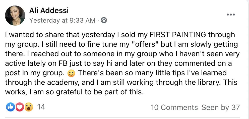 For serious artists who want to take the next steps to building a profitable online art business, you can grab a Clarity Call with Team Art Boss. There is huge value to knowing what you need to do to close more online and offline art sales. During this call we will uncover what you need to do next and where your current sales system is not working.